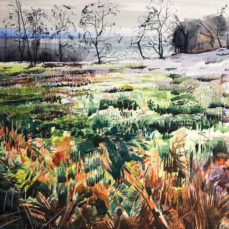 Gillian trained at Winchester School of Art, receiving a PhD in Fine Art (Painting) in 2009. Her work combines traditional painting techniques of oil on canvas with contemporary emphases on abstraction, archaeology and on the exploration of the nature of vision. Human forms often underlie the paintings and her landscape work explores the bodily experience of painting outdoors and the impact of the elements on perception and feeling.