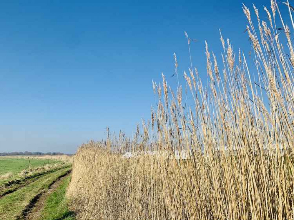 • Watch out for Wildmoor Lane on your left. This will lead you through a plant nursery to an open track lined on one side by reeds and looking back over towards St Peter's Church.