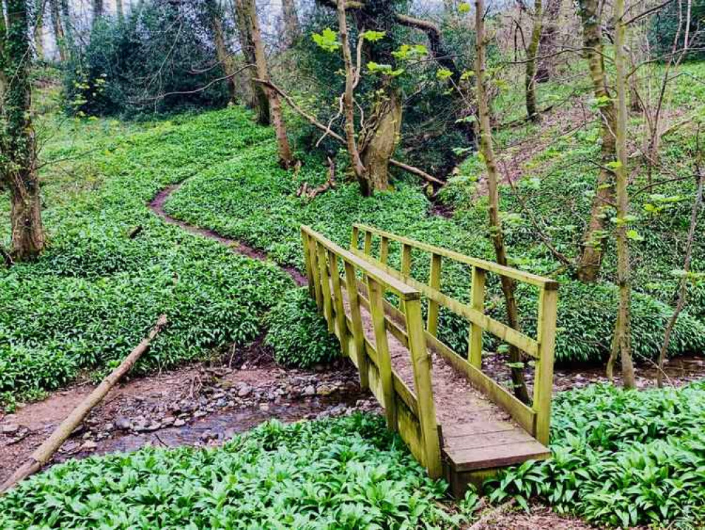 • Crossing over the stream in this wooded boundary between fields, you'll be struck by the smell of thousands of wild garlic plants, whose bright leaves carpet much of the woodland on this walk.