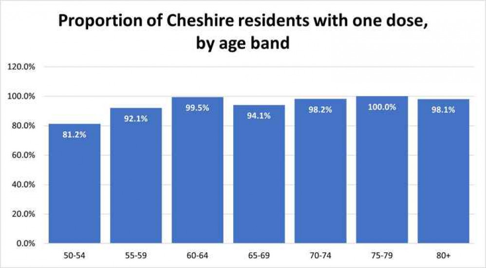 The vaccination programme continues to go well. The latest NHS England data, to March 28, shows that 60 per cent of the over-16 population in Cheshire and Merseyside have had their first dose.