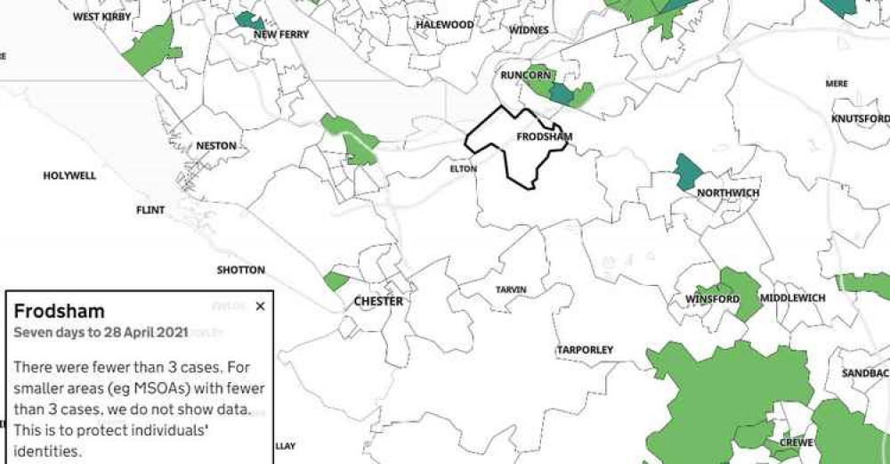 For the third week running, the number of new coronavirus cases arising in Frodsham, Helsby and the surrounding villages in the seven days up to 28 April remained below three.