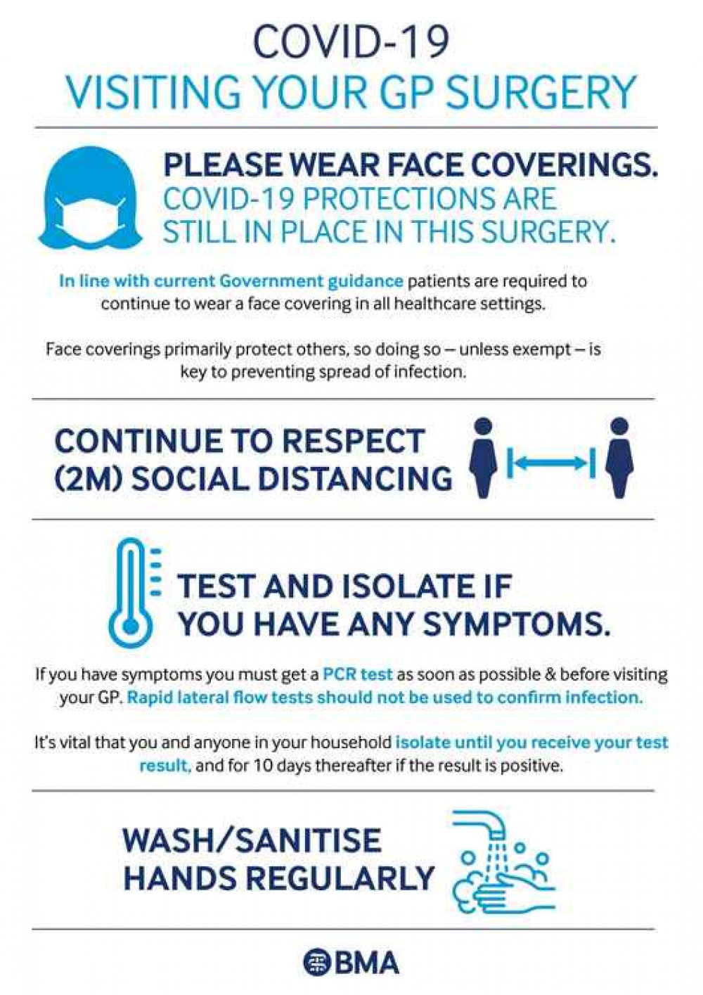 "Patients will still need to wear a mask/face covering, socially distance and use hand sanitiser and all our patient-facing staff will continue to wear PPE.