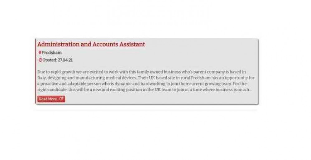 JOB OF THE WEEK: Administration and Accounts Assistant with Frodsham company