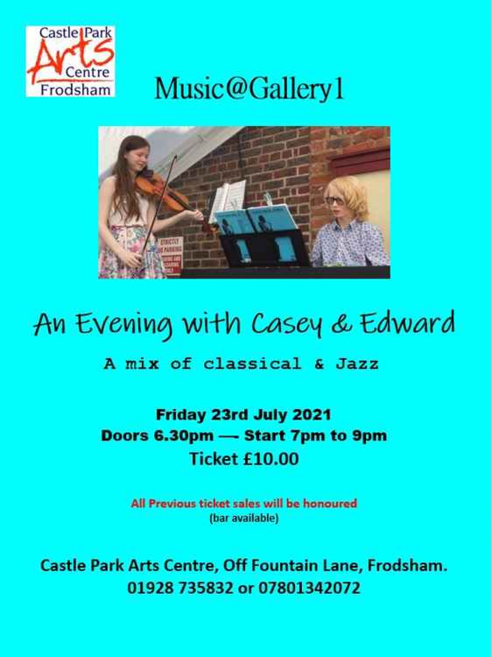 Tickets are available from the Arts Centre or by phoning 01928 735832 or 07801 342072. Those who were expecting to go to Casey and Edward's November show - postponed due to Covid-19 restrictions - will be able to use their original tickets for this event.