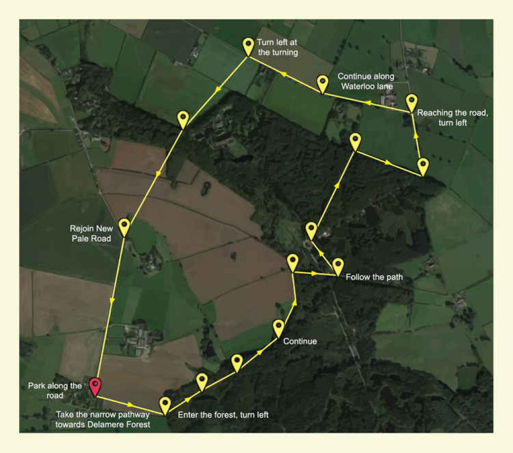 There is some space to park along the side of New Pale Road in Manley Common. This lane is named after the New Pale, an area of open land which is a remnant of the old hunting forests of Mara and Mondrem, favourite stomping grounds of the Earls of Chester from as early as the 11th century.